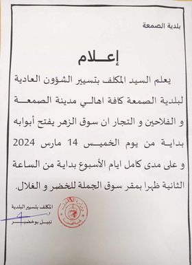 يعلن السيد الكاتب العام المسير لبلدية الصمعة أنه...